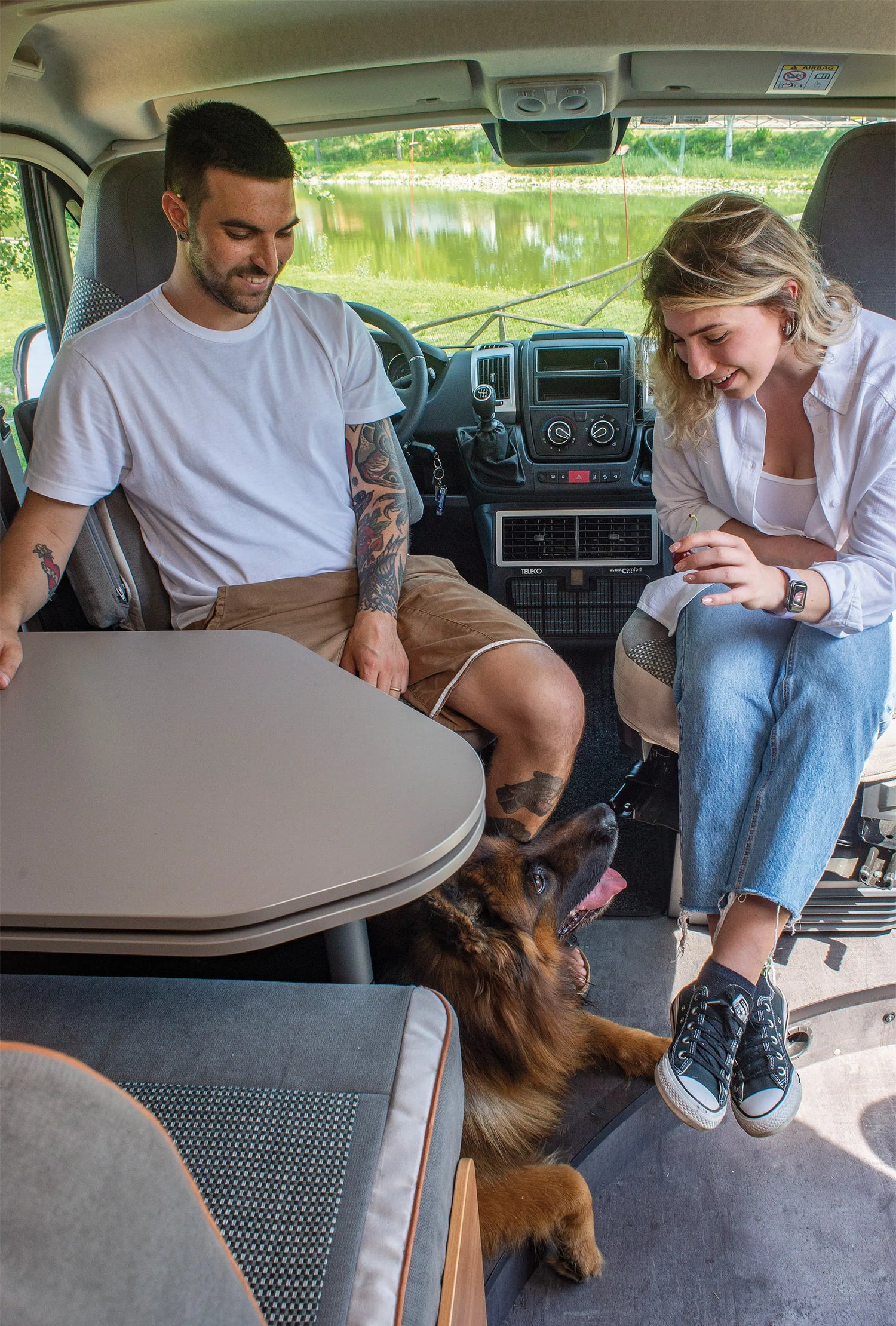 - L'unité intérieure du climatiseur Ultra Comfort s'insère dans le tableau de bord à l'intérieur du véhicule (camping-car profilé, van ou fourgon à toit relevable).